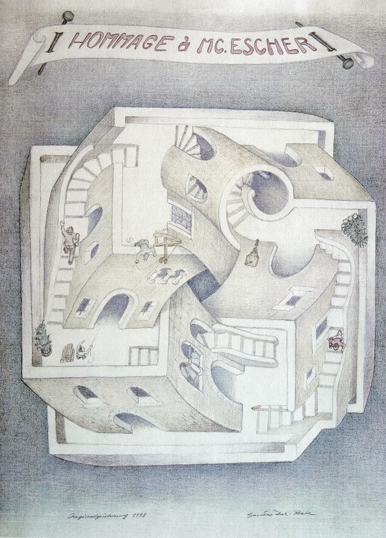 L’auteur a crée le terme d’illusorisme pour désigner le processus par lequel des illusions d’optique sont représentées dans des dessins ou des tableaux. Ces illusions d’optique sont en fait des tromperies dans le sens le plus large du terme. L’effet de l’illusion des illosorismes naît, comme chez les illusionistes, d’une combinaison de perspectives volontairement incorrecte, soit de juex d’ombre et de lumière, dont l’interprétation peut prêter