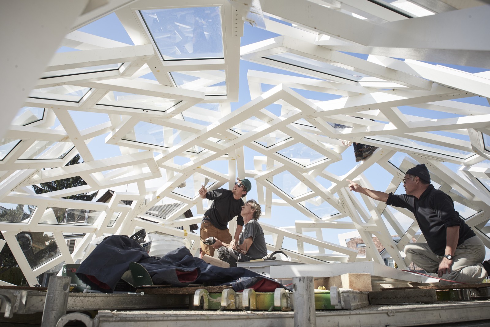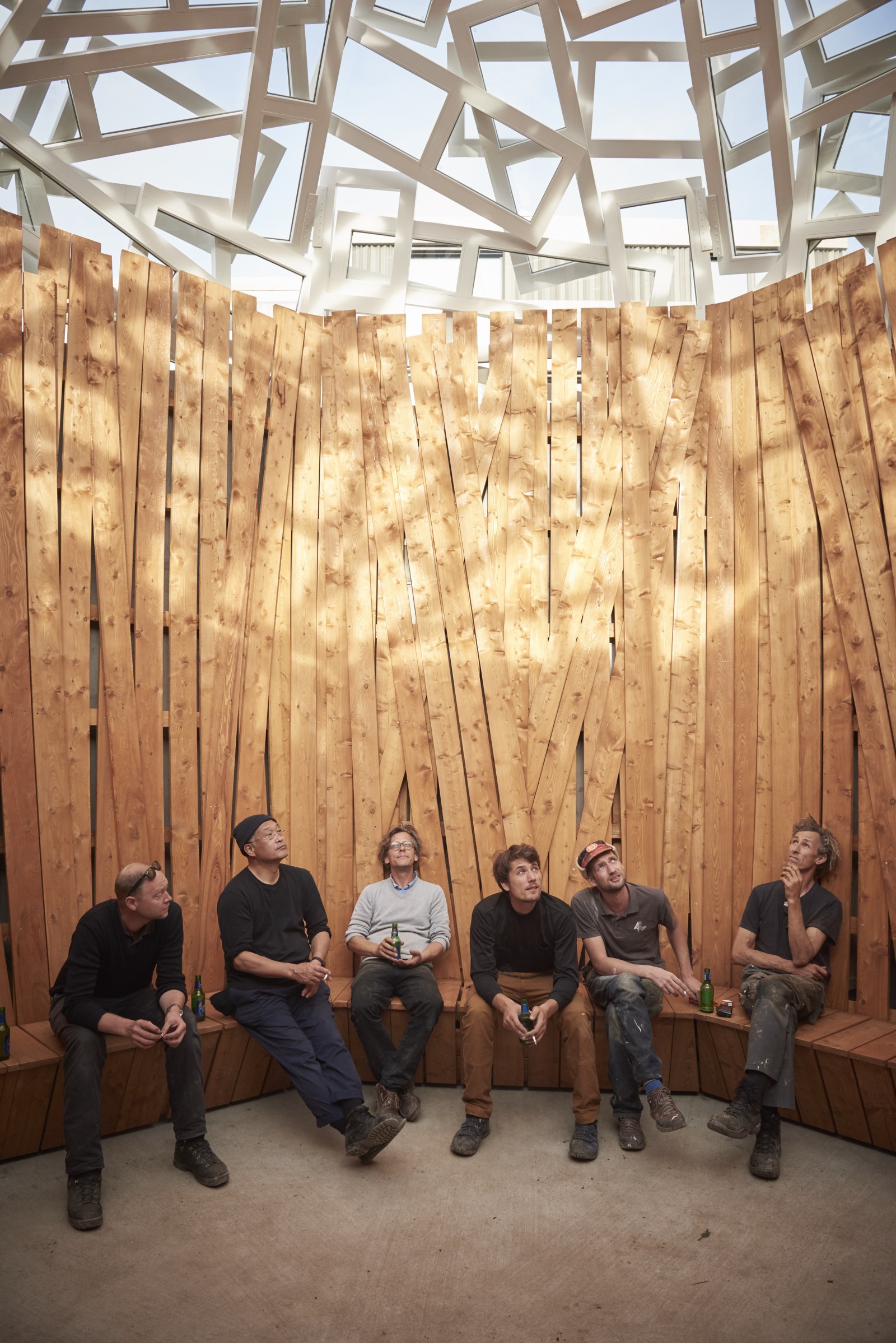 Der performance-artige Aufbauprozess, zentraler Bestandteil von Kawamatas Arbeit, wurde vom Fotografen Gian Marco Castelberg in stimmungsvollen Bildern dokumentiert, Skizzen aus dem Archiv von Tadashi Kawamata und Referenzprojekte stellen das Werk in Bezug zum gedanklichen Universum des Künstlers. Verschiedene Autoren, u.a. vom Schweizer Philosophen Stefan Zweifel, betten das Werk in einen künstlerisch-architektonischen, sozialen und philosophischen Kontext. Ein Interview mit dem Künstler beleuchtet Inspirationsquellen, Arbeitsweise und Vision.